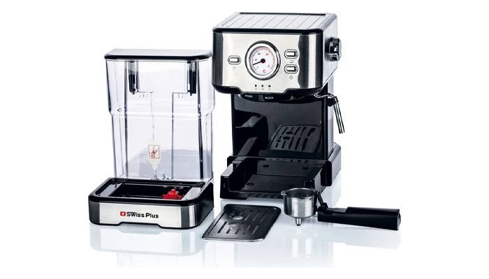 اسپرسو ساز سوییس پلاس مدل2220 معرفی اسپرسو ساز سوییس پلاس مدل2220 تولید شرکت سوییس پلاس با هجده ماه گارانتی شرکتی می باشد. این اسپرسوساز دارای دستگیره بخار قابل تنظیم می باشد پمپ فشار قوی با 20 بار فشار را تولید می کند. این پمپ باعث تولید قهوه با طعم و مزه ی بسیار دلچسب می شود. فیلتر این اسپرسو ساز ازجنس استیل ضد زنگمی باشد. عملکرد تولید کف این محصول بسیار بالا و پر قدرت می باشد. جنس مخزن تولید شده از آلیاژ آلومینیم ریخته گری شده می باشد. مخزن آب شفاف از جنس پلاستیک براق و شفاف با گنجایش 1.5 لیتر قابلیت جدا سازی از دستگاه را دارد . همچنین سینی قطره آن هم قابلیت جدا سازی برای تمیزی بهتر و آسانتر را دارا می باشد. این دستگاه در برابر دمای بالا و گرمای بیش از حد و همچنین فشار بیش از حد محافظت و مقاوم سازی شده است. شما میتوانید از طریق دماسنج روی دستگاه دما را به وضوح ملاحظه نمایید.