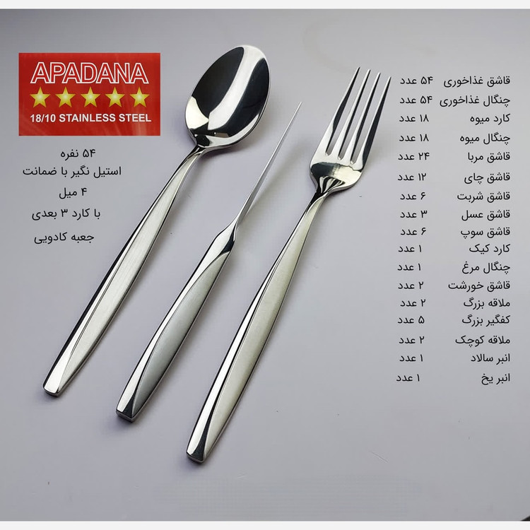 سرویس قاشق چنگال مجموعهای از ابزارهای ضروری برای سرو و خوردن غذا است که شامل قاشقها، چنگالها، و کاردها میشود. این سرویسها با توجه به تعداد افراد و نیازهای مختلف، در انواع 24 نفره و 54 نفره و حتی بیشتر تولید میشوند. جنس این ابزارها باید از استیل ضدزنگ باشد تا ماندگاری بیشتری برای شما داشته باشد. هنگام خرید سرویس قاشق چنگال، عواملی مانند جنس، طراحی، قیمت و کیفیت را در نظر بگیرید تا خریدی متناسب با نیاز و سلیقه خود داشته باشید. بهترین گزینه برای شما سرویس قاشق و چنگال 210 پارچه 54 نفره استیل نگیر با ضمانت 12 ماهه 4 میل به همراه جعبه جادویی قاشق غذاخوری 54 عدد